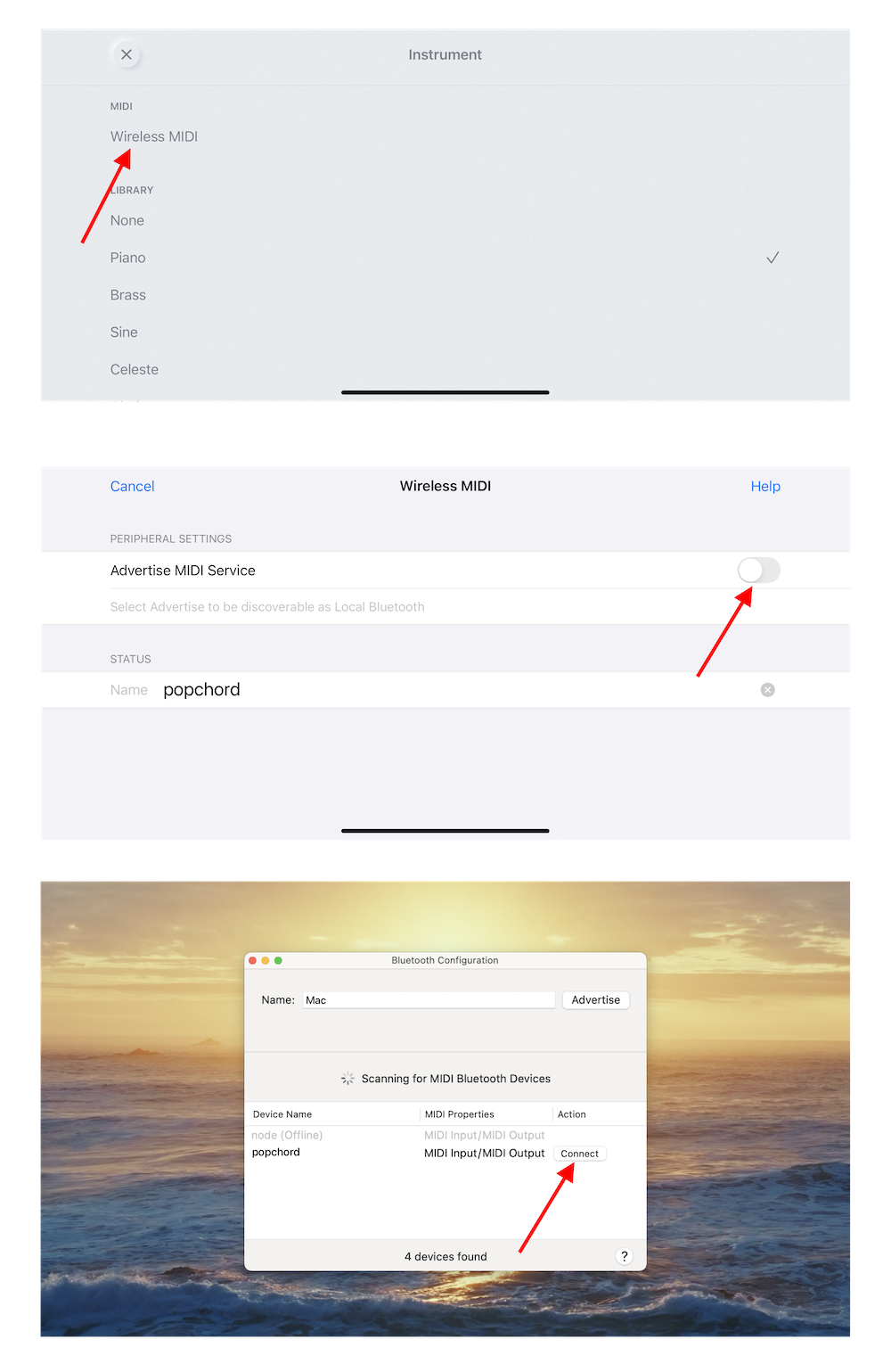 - Congrats! Wireless MIDI is now enabled. Any bars you tap in popchord will now send MIDI to your Mac. Be sure to enable MIDI input for your device in your DAW's settings.